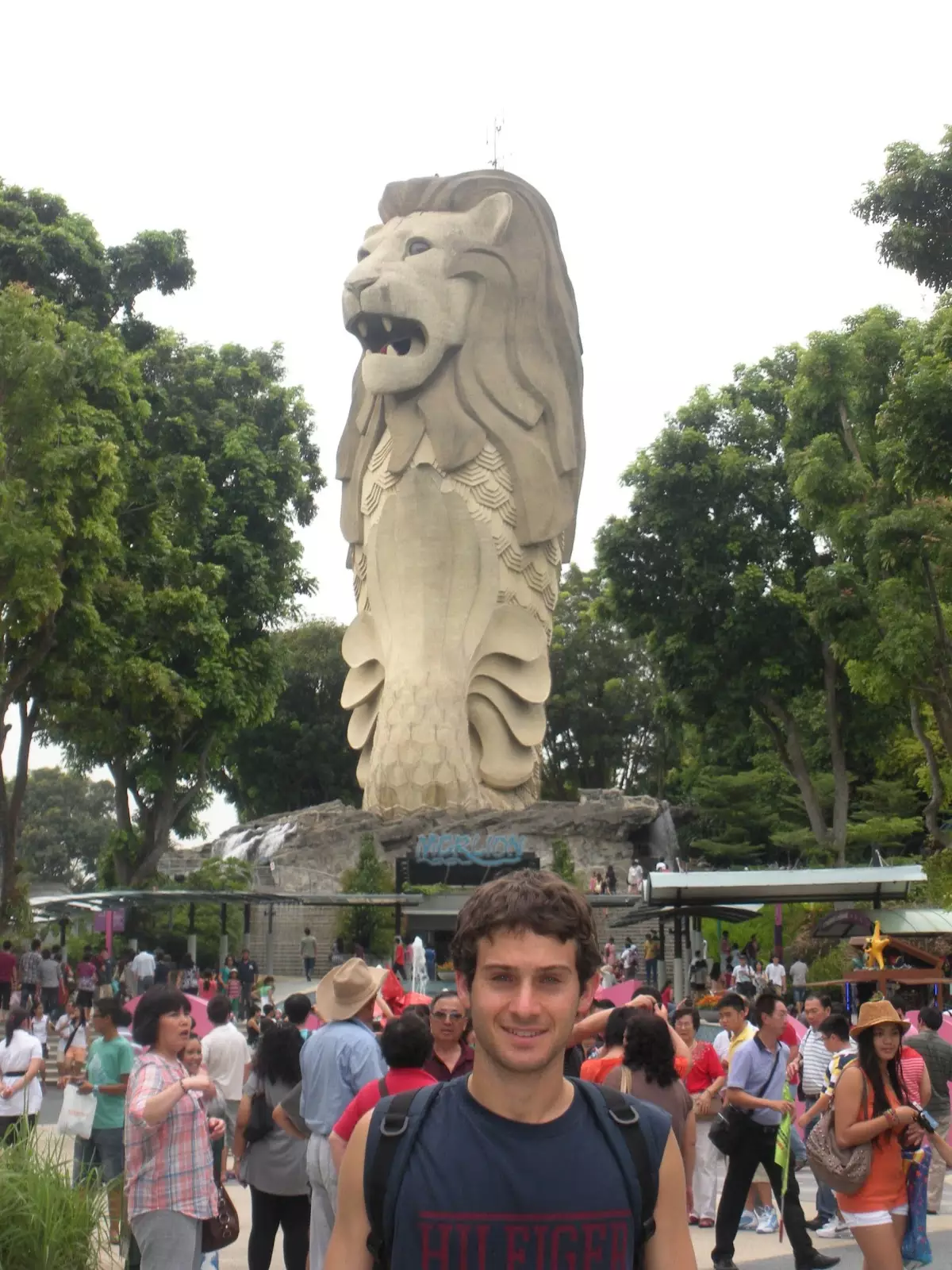 Domingo 1 de Mayo. Nuestro alojamiento, el Wow Hostel, incluía desayuno, pero se servía a la vuelta de donde dormíamos. Era sencillo, pero servía para arrancar mejor el día. Este era nuestro último día en Singapur y nos quedaba el Shopping más grande de la ciudad y la isla de Sentosa. Este Shopping queda al sur de la ciudad, justo por encima de la última estación de la línea violeta (Harbour Front) del MRT. Inmenso por donde lo mires y difícil de recorrerlo todo en poco tiempo, por lo que decidimos ya siendo las 15 hs cruzar a Sentosa Island. Esta isla tiene varias atracciones, las cuales obviamente hay que pagar, entre las cuales se encuentra Universal Studios. Habiendo llegado tan tarde no se justificaba pagar los 70 dólares de entrada por persona. Conocimos la zona de playas, que si bien no eran gran cosa, tenían su encanto particular. Nos hubiese gustado aprovechar más el día en la isla pero estábamos demasiado agotados. La humedad que había en Singapur era terrible y para colmo se largó a llover, por lo que volvimos al hostel. Aprovechamos el tiempo que quedaba para ir a la terminal de micros para buscar alojamiento en Kuala Lumpur. Nuevamente era momento de comer y de buscar alguna alternativa a la complicada comida china. Cenamos y nos dirigimos con tiempo a la terminal.