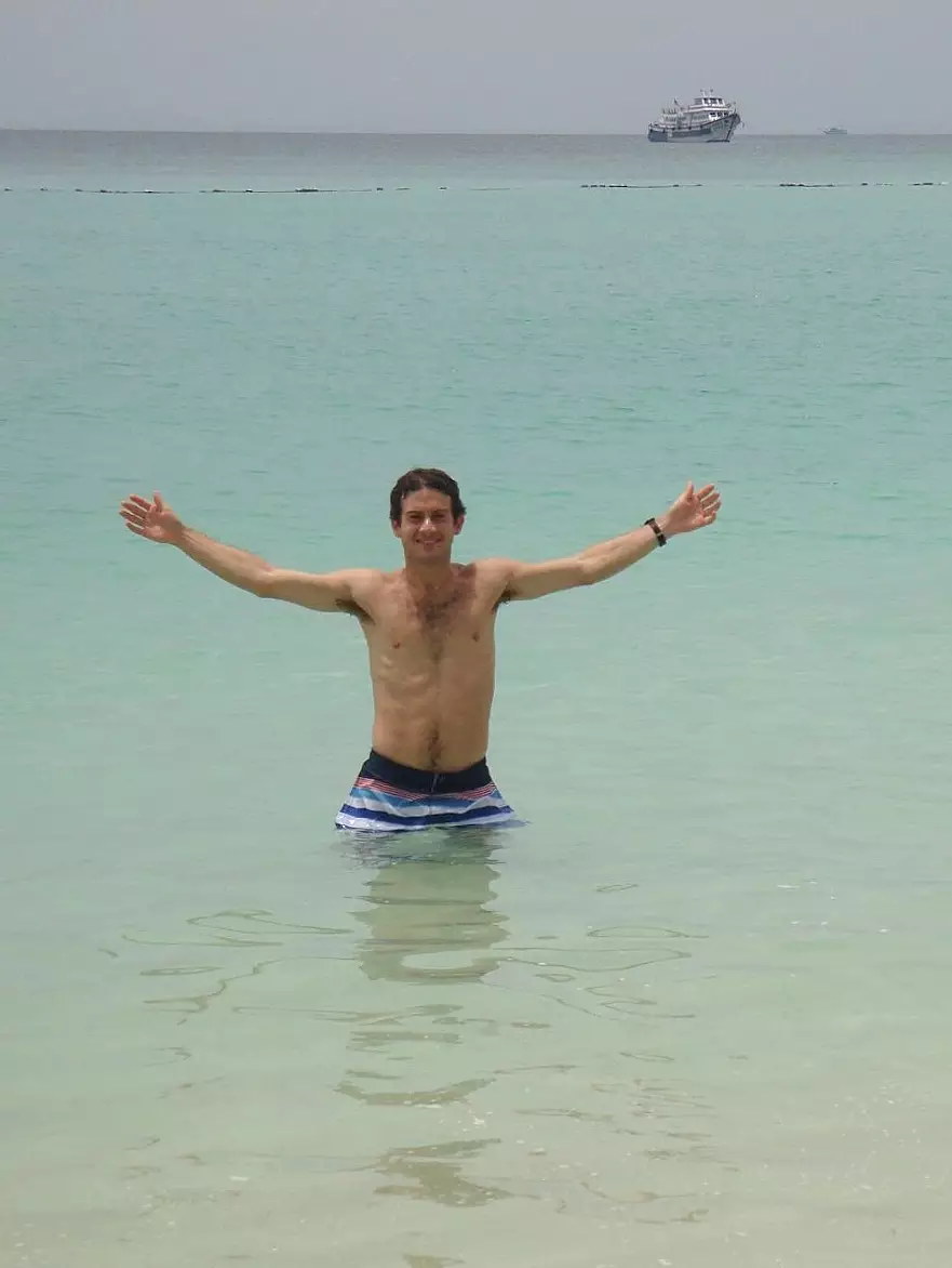 Viernes 6 al domingo 8 de Mayo. La idea de venir a estar parte de la isla era para descansar y hacer playa en un lugar donde no haya ruidos, vida nocturna y demás cosas que puedan perturbar la tranquilidad. Estos días comenzaban con un desayuno tipo americano en el que tratábamos de que sea la comida más fuerte del día. Como de la habitación al comedor había que caminar como cinco minutos, después del desayuno nos íbamos directo a la playa. La playa era realmente espectacular. El mar tenía color verde esmeralda con mezcla de celestes. El agua era transparente sin olas y tenía una temperatura ideal. Uno se metía al mar y tranquilamente podía estar horas. Durante estos días conocimos a una pareja de sudafricanos que estaban pasando su luna de miel en Tailandia. Con ellos compartimos largas charlas intercambiando datos, formas de vida y cultura, y quedamos en que estábamos invitados a visitar a los otros ofreciéndole alojamiento. Hablando con ellos quedamos en hacer alguna excursión por ahí. Frente a nuestra playa habían dos islas: Mosquito y Bamboo. Una de tantas excursiones que organizaban era ir a hacer snorkel a estas islas. Bamboo, al ser declarada Parque Nacional, tenía una tarifa impuesta solo por desembarcar en ella. Con esta pareja de sudafricanos contratamos un bote de madera que nos llevó a hacer snorkel a Mosquito. Finalmente, luego de pasar estos cuatro hermosos y tranquilos días, decidimos pasar de nuevo por el centro de la isla de Phi Phi para tener un poco de diversión y estar nuevamente en contacto con gente.