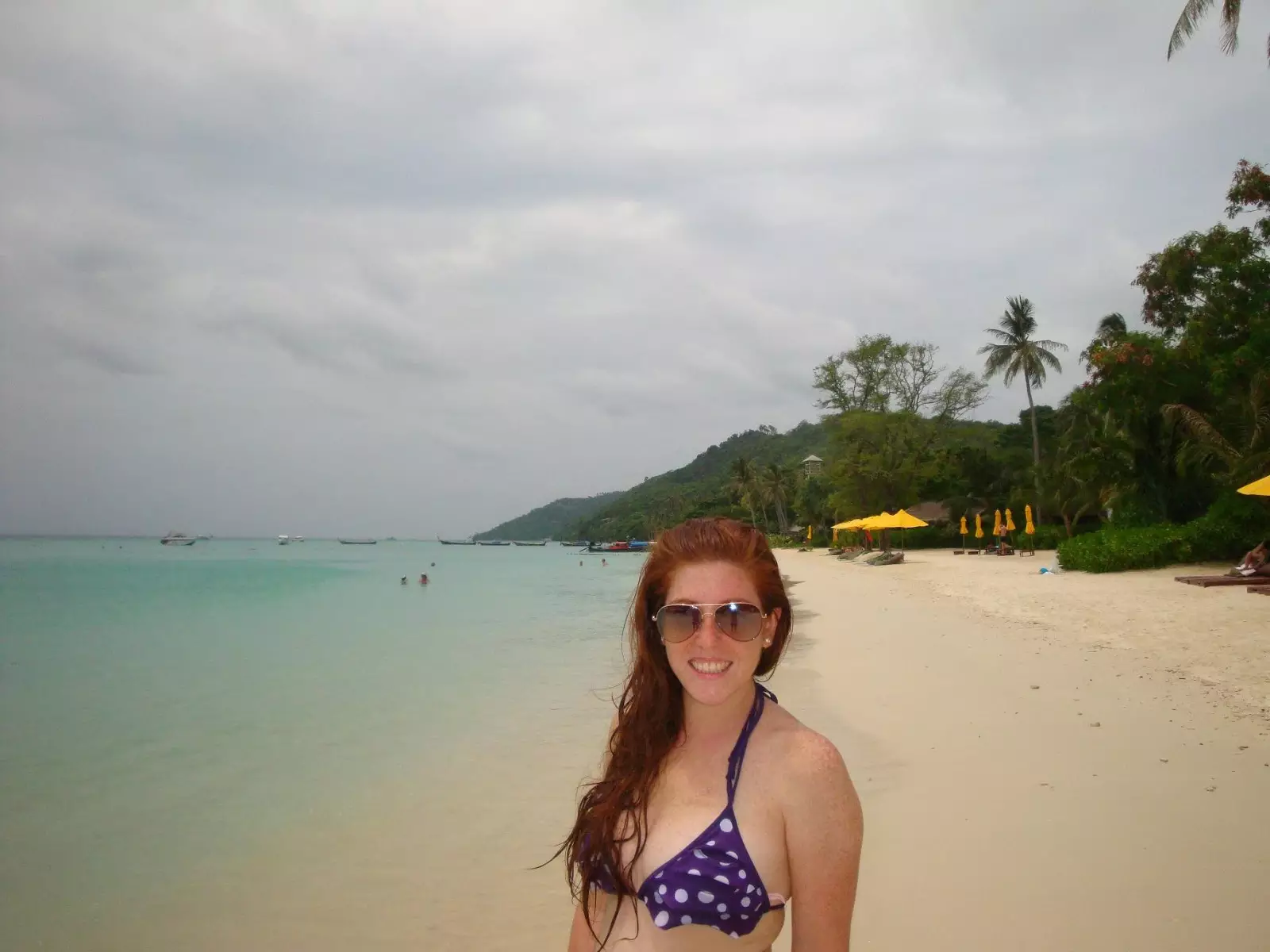 Tuvimos que esperar casi tres horas para que llegue el barco que nos llevaría hasta la playa donde quedaba nuestro hotel. Esta playa de unos 600m de largo es exclusiva para los cuatro hoteles que hay. Los huéspedes de estos muy lindos hoteles son en su mayoría gente adulta y no jóvenes. El barco nos dejó directo sobre la playa, mientras que personal del hotel se encargaba de bajar nuestro equipaje. Nos recibieron con una toallita refrescante y un jugo vaya uno a saber de que fruta. En un carrito de golf nos llevaron a la habitación y hasta nos entraron el equipaje. El maletero se descalza delante nuestro para entrar a la habitación. Tanto aquí como en muchos otros lugares ya recorridos es muy común el descalzarse para entrar a una habitación, oficina, casa, etc. Luego de acomodar las cosas y ver que teníamos frigobar, toallas, TV, batas, cafetera y una decoración muy linda, entre otras cosas, nos fuimos a caminar por la playa y a conocer un poco más el hotel y sus alrededores. A medida que pasaba el tiempo nos convencimos cada vez más que habíamos hecho una muy buena elección en ir a esa playa alejada de todo y de todos. Ya para la hora de la cena estaban todos los restaurantes abiertos, y algunos hasta tenían un cantante cantando temas internacionales. Todos estos restaurantes situados sobre la playa ofrecían un ambiente de los más lindos y románticos que uno podía pedir en una playa como esta. Ya una vez que oscurecía el mar se retiraba bastante de la costa y quedaban algunas embarcaciones apoyadas directamente sobre la arena. Cenamos comida thai en uno de esos restaurantes y nos fuimos a dormir temprano porque no había nada más para hacer.