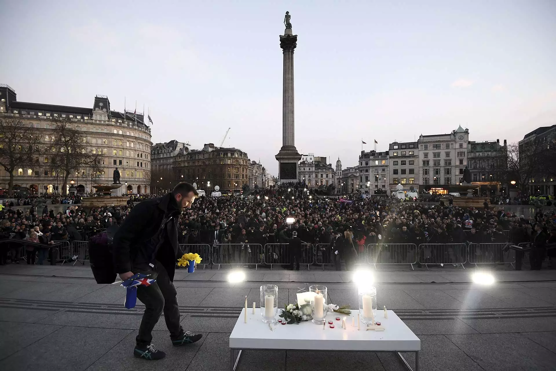 El alcalde de Londres, el laborista Sadiq Khan, convocó la vigilia en la céntrica plaza de Trafalgar en solidaridad con las víctimas del atentado perpetrado frente al Parlamento.