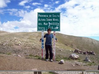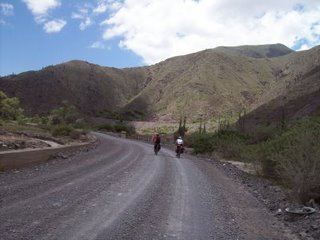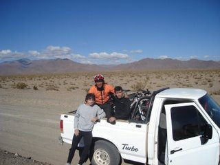 Carrizo nos preparó algo rápido para que desayunemos así podíamos partir temprano ya que nos esperaba una larga jornada de pedaleo. Nuestra intensión era hacer 92 Km. hasta Santa Rosa de Tastil (3110 msnm). Nos despedimos de Carrizo, y partimos a Campo Quijano en busca de una costurera para que me arregle un cierre de la alforja que se me había roto. Solucionamos el tema comprando un belcro. Aquí, en Quijano, comienza el ripio. Los primeros kilómetros fueron accesibles con leves subidas en las que nos sobraban energías. A medida que pasaban los kilómetros, la ruta se empezó a complicar debido a la presencia de camiones y de curvas muy cerradas en las que había que estar muy atento. Esto se veía reflejado en la cantidad de monumentos a fallecidos al costado de la misma. Durante todo este trayecto la ruta iba casi paralela a las vías del famoso Tren a las Nubes. La constante subida y el ripio empezaron a desgastarnos y a hacer descansos más de lo pensado. Pasamos pequeños poblados como ser El Aisal (1775 msnm). Llegamos al Paraje Chorrillos pasado el mediodía. Allí pensábamos almorzar. Mientras nos dirigíamos a un supuesto restaurante, vemos pasar por la ruta una camioneta Nissan a la cual estando los tres de acuerdo, le hacemos dedo. Muy amablemente nos paran y resultan ser una pareja holandesa que se dirigían a San Antonio de Los Cobres (3775 msnm), nuestro destino del día siguiente. Teníamos la intención de que nos acerquen hasta Santa Rosa de Tastil, pero viendo que no había nada interesante allí, decidimos continuar viaje con ellos hasta San Antonio de Los Cobres. En el camino paramos a comer al costado de la ruta en una casa de una señora, que nos preparó un cabrito delicioso. Seguimos viaje como veníamos en el acoplado de la camioneta. Dejamos atrás pequeños caseríos como Ingeniero Maury (2359 msnm). Este personaje fue uno de los principales mentores y ejecutores del tendido de las vías férreas desde Salta hasta Chile), Gobernador Solá (2556 msnm) y al costado de la ruta la vieja estación de tren, hoy abandonada de Puerta de Tastil. Unos kilómetros mas adelante estaba Santa Rosa de Tastil (3110 msnm). En todo este trayecto asombra la construcción de las cosas. La mayoría son de abobe y de baja estatura. Quizás esto se deba para protegerse de los fuertes vientos. Otro factor sorpresa es la cantidad de iglesias. Es decir, en poblados en los que no excede las tres o cinco casas, siempre hay una allí presente. Cada vez estábamos más convencidos en el acierto de haber hecho dedo. La ruta ya de pavimento no paraba de ascender. Habíamos salido de los 1200 msnm y llegamos a los 3775 msnm habiendo pasando en la ruta por los 4080 msnm en el Abra de Muñano. Era un enorme ascenso en tan poco tiempo y sin una previa aclimatación. Ya en San Antonio, encontramos una casita que nos alquilaron y realmente nos sentíamos muy cómodos. Con el correr de los minutos empezamos a sentir algunas molestias producto de la altura. Los tres teníamos un pequeño dolor de cabeza y nos fuimos a hacer un chequeo al único hospital regional del pueblo. Nos tomaron la presión y nos aplicaron una dosis de oxígeno y tanto Ivo como Javier se sintieron mejor. En cambio yo, salí un poco mareado y al rato empecé de nuevo con dolor de cabeza. Me fui directo a la cama sin cenar nada para horas mas tarde vomitar todo el rico almuerzo que habíamos tenido.