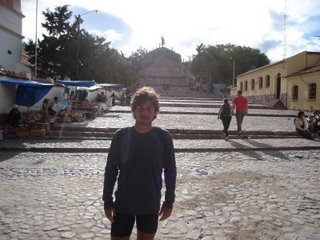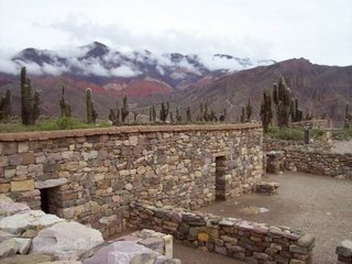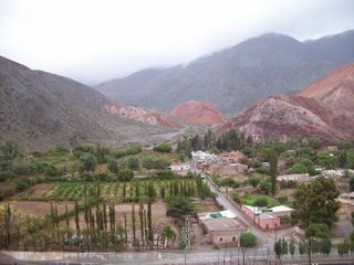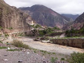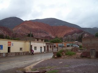 Fue un día diferente. No solo por ser mi cumpleaños, sino porque amaneció lloviendo. Había estado cayendo agua toda la noche y eso se notaba en sus callecitas de tierra. Barro y mucho barro era el común denominador de este pueblito que en los últimos años tuvo un gran crecimiento. Mucho turismo especialmente cordobés y de otras partes del país ocupaban las plazas en los distintos alojamientos. Teníamos planeado unos circuitos y miradores para hacer, pero tuvieron que ser cancelados. Este mismo día queríamos irnos pedaleando hasta Tilcara, otro pueblito de la Quebrada de Humahuaca, distante a tan solo 22 Km. Analizando sus posibles consecuencias debido a la lluvia, decidimos tomarnos el micro. Por primera vez agarramos la RN9 (es toda pavimentada) y antes de llegar a Tilcara entramos a Maimará, pequeño municipio en plena quebrada. Tilcara no varió mucho respecto de Purmamarca. Al rato que llegamos se largo a llover, por lo que no pudimos hacer nada durante la tarde. Recién a la noche paró la lluvia y salimos a cenar. Tuvimos una larga y entretenida charla hasta pasada la medianoche.