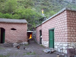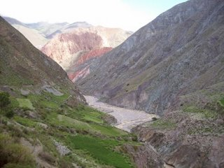 Amanecimos temprano y en lo personal me seguía costando creer donde estaba durmiendo. La idea era irnos lo más temprano posible para evitar un posible encuentro con los habitantes de la casa. Supusimos que se habían ido al pueblo a pasar año nuevo y volverían este mismo día por la mañana. De todas maneras, una vez en Iruya íbamos a averiguar quienes eran los dueños para acercarnos a contarles lo ocurrido y darles en compensación una suma simbólica y representativa por los daños ocasionados. Emprendimos el camino de vuelta por el mismo sendero que vinimos. Cuando había un corte en la montaña, o el sendero desaparecía, venia la intuición grupal y seguíamos el camino trepando o bajando por donde nuestros instintos decían. A mitad de camino vemos un muchachito viniendo en sentido contrario. Le pedimos que nos acompañara y guiara hasta Iruya. Nuestro mayor temor era cruzar el río nuevamente. Cuando accedió, todos respiramos tranquilidad sabiendo que estábamos en manos conocedoras. Cuando llegamos al río nos percatamos que estaba mas tranquilo que el día de ayer. Nos agarramos los cinco de la mano formando una barrera humana y cruzamos sin mayores problemas. Del otro lado del río y en medio de la montaña se veían unas figuras humanas. El chango que nos hacía de guía, nos avisó que allí enfrente iban los dueños de la casita donde habíamos pasado la noche. De inmediato les hace señas para que paren y junto con Guillermo se acercan hasta donde están. Guillermo le explicó lo ocurrido y les dejó una suma de dinero. La gente entendió perfectamente nuestra situación y aceptó conforme el dinero. Si bien no sentíamos ningún tipo de culpa por haber usurpado esa casa, después de haber saldado esta deuda tanto con los propietarios, como con nosotros mismos, sentimos una complacida sensación de bien estar.