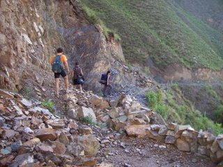 Habíamos arreglado con un chango lugareño para que nos haga de guía hasta el pueblito de San Isidro. Son alrededor de 7 Km., y su único acceso es caminando subiendo por la montaña, y cruzando varias veces el tan temido río. Durante el verano, las lluvias hacen crecer mucho el caudal del río. Este río no mide más de 10m de ancho y su profundidad no supera el metro. Estos datos no asustan a simple vista, pero lo que lo hace difícil y hasta imposible de cruzar para los lugareños mismos es que el río tiene una corriente asombrosa arrastrando rocas del tamaño de una cacerola viniendo a gran velocidad. Empezamos a caminar alrededor de las 10:30 hs y un rato después, cuando llegamos al primer cruce del río, comenzaron las dudas, incertezas y miedos. En ese momento, se nos unieron un muchachos llamado Guillermo (de BsAs) y una chica inglesa que estaban juntos. Entre los seis (incluyendo al guía) pudimos cruzar la primer parte del río. Luego, empezamos a subir una montaña bordeando la ladera. El camino se empezó a complicar hasta el punto de que cualquier paso en falso, podría significar un resbalón y caer por un precipicio. Con mucho cuidado pasamos este nuevo obstáculo sanos y salvo. Llegamos nuevamente al nivel del río. Estuvimos más de una hora pensando y deliberando como íbamos a sortear este nuevo cruce del río que encima era doble. Ya todas nuestras piernas estaban golpeadas por las rocas que el río arrastra. Mientras el guía piensa y analiza por donde conviene cruzar, nosotros sentaditos y ya preocupados escuchamos sin cesar el ruido constante del movimiento de rocas y piedras. Con mucha decisión y coraje, logramos cruzar una de las dos últimas partes, para finalmente continuar por un camino mas tranquilo hasta San Isidro. Estábamos a solo un paso. Tan cerca, pero tan lejos a la vez. De nuevo se vivieron momentos de pura indecisión. Leo, el guía que nos acompañaba, finalmente desistió de cruzar esta última parte argumentando que estaba muy peligroso y que no quería arriesgarnos, y por lo tanto decidió volverse. Ivo, tomando una actitud muy individualista, se largó solo a cruzar sin avisar a ninguno de nosotros. Lo logró, pero se cayó, rodó en el río y se le produjo un importante corte en la rodilla. Quedábamos cuatro. Guillermo, Javier, la inglesa y yo. Acordamos actuar y tomar decisiones en grupo, es decir, escuchándonos, ayudándonos, y buscando la mejor solución. Basándonos en esto, desistimos de cruzar el río, pero no de llegar a San Isidro que era el objetivo propuesto. Empezamos a escalar una montaña que subía en forma paralela al río. Pensamos que podía ser una alternativa de camino. Cruzamos a dos lugareños y nos dijeron que podíamos llegar por la montaña, pero que había que conocer bien el camino porque no era fácil. Al no tener delimitado el camino, esta situación me hacia acordar a los libros “Elije tu propia aventura”. Acá muchos te aconsejaban, pero nadie te aseguraba nada, es decir, eran todas incertezas y ninguna certeza. Pese a todo, decidimos seguir subiendo y encontrar ese camino. Por momentos íbamos por un pequeño sendero y era eso lo que alimentaba nuestra ilusión de poder llegar. Sabíamos que estaba hecho por el hombre, y que a algún lugar nos iba a conducir. La esperanza por momentos se esfumaba ya que desaparecía el camino. Subiendo la montaña por una zona rocosa apareció delante de mis pies una inesperada serpiente. Les avise con un grito a mis tres compañeros y ví en ellos cara de preocupación. Guillermo, es que es casi medico, nos alarmó del real peligro que una picadura podría ocasionar. Fue ahí donde empecé a preocuparme. Empezamos a subir, bajar y cruzar por terrenos muy peligrosos en los que un simple resbalón o paso en falso, era sinónimo de muerte. Mis palabras pueden parecer exageradas, pero tengo tres testigos que no me dejan mentir. Actuando en grupo, y de una manera muy cuidadosamente, salimos airosos de esas situaciones particulares. Se estaba haciendo tarde y de a poquito el sol de escondía por detrás de las montañas. Estábamos cada vez mas cerca. Faltaba menos. De repente, Javito y yo que íbamos últimos, escuchamos ruidos de atrás. Al darnos vuelta, vemos a tres cabritos que nos están corriendo por el estrecho sendero. Asustados, les pedimos a Guillermo y a la inglesa que corran porque nos iban a cuernear. La concentración y atención que teníamos que tener era doble. Tanto para mirar el sendero, como para mirar a los cabritos. Ya se notaba la presencia humana debido a estos animalitos y también debido a obstáculos y trabas que pusieron en el sendero para frenar su avance. Estos obstáculos no eran un impedimento para los cabritos, ya que pudieron esquivarlos y continuar corriéndonos. Nosotros ya habíamos llegado al final del sendero y desde ahí se podían ver algunas construcciones de San Isidro. Ya no podíamos seguir por la montaña y no quedaba otra opción de enfrentarse nuevamente con el río. Bajamos hasta el río y empezamos a buscar el sector más fácil para cruzar. Inicialmente uno tiende a pensar que es por la parte mas angosta. Pero hay una magnitud física que es el caudal y que se mantiene constante. Con esto se deduce que a menor superficie, mayor velocidad del caudal. Por lo tanto desechamos esa teoría y seguimos buscando. Hicimos un par de intentos pero no prosperaron. La preocupación de todos ya era notoria, pero en especial la mía porque estaba en calzas cortas, remera, sin nada de abrigo, con frío y para colmo con la ropa húmeda. Javier en cambio, tenía algo de abrigo. La inglesa y Guillermo eran los que mejor estaban preparados para eventualmente pasar la noche en la montaña. Tenían abrigo, una bolsa de dormir, y algo de comida. Ya siendo las 18 hs, ellos dos decidieron pasar la noche en la montaña debido a que la inglesa estaba exhausta. Javier y yo nos miramos con extrema preocupación. Yo le planteé la idea de volver a Iru