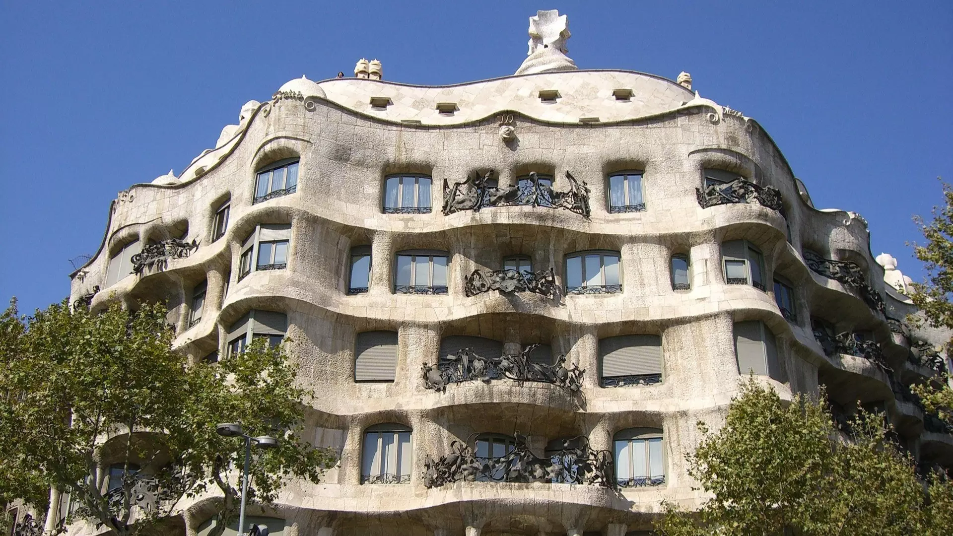 Más arriba en el paseo está La Pedrera. Fue muy criticada en su época (la llamaban «pedrera» despectivamente por parecer una cantera de piedra). Su fachada es una ola de piedra calcárea. La azotea es un paisaje lunar con chimeneas que parecen guerreros medievales (los «espantabrujas»).